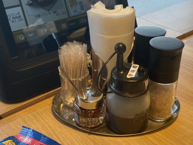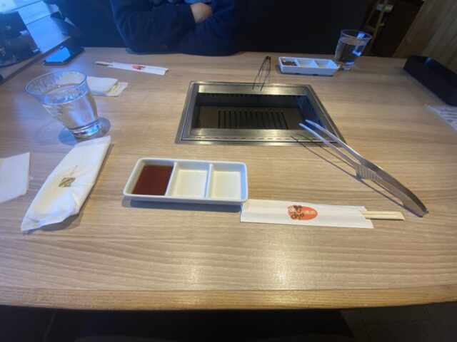 注文を終えると、店員さんがお水が入ったグラス、お箸やおしぼり、たれが入った小皿にトングを用意してくれます。